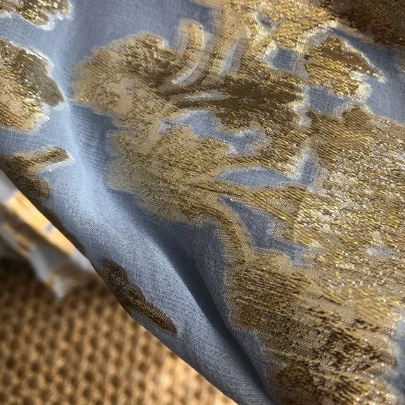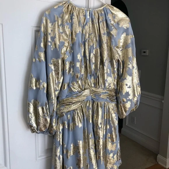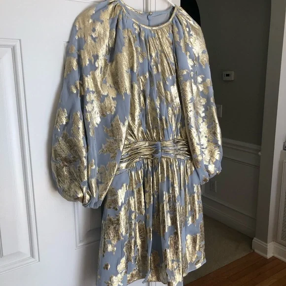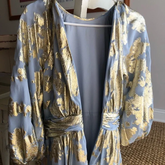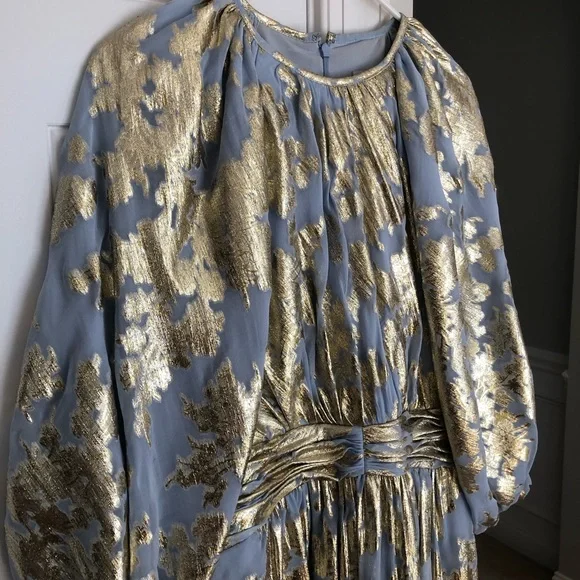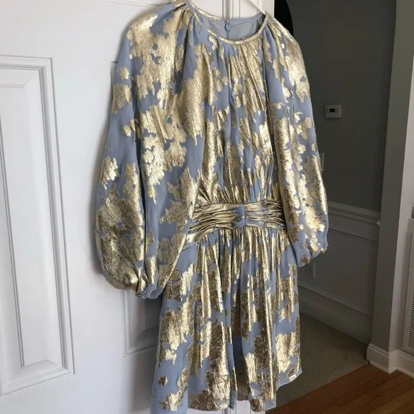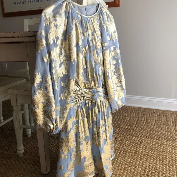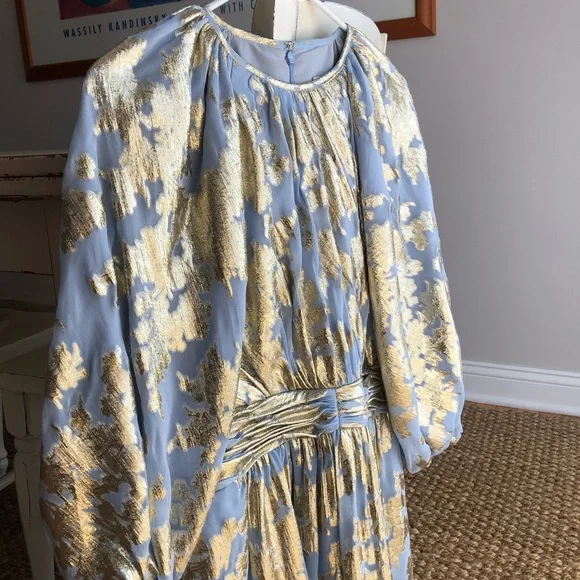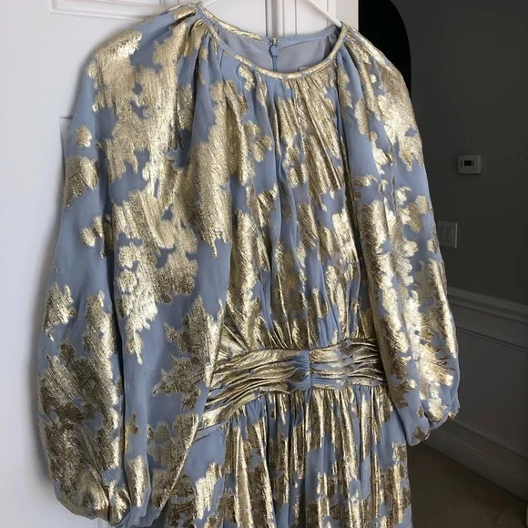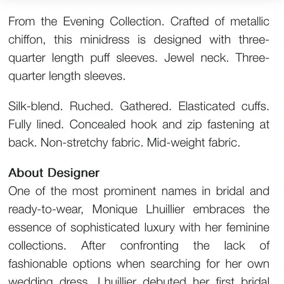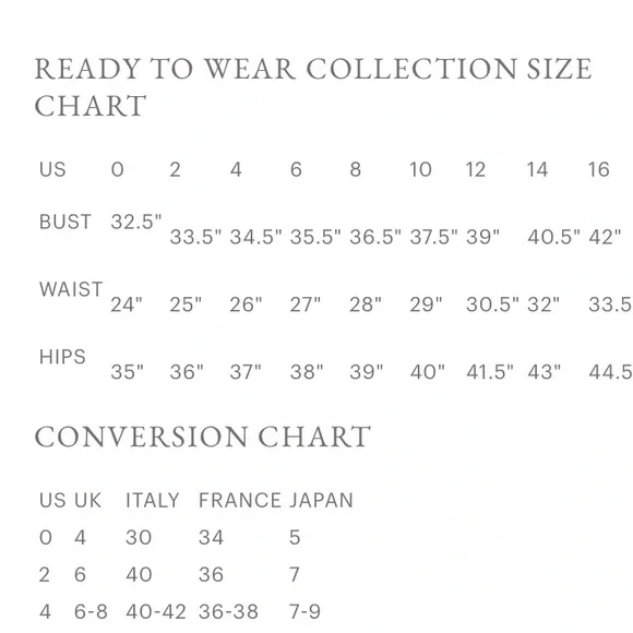 I measured approximately Chest 16.5”Length 34”Approximate General size chart attached Worn onceNot laundered No issues really except you can see some of her tanner on the interior of the dressI’ve priced accordingly for this and any other wearSee picture***Just saw two teeny dots on sleeve***Therefore I took 20-25$ off of list price in case you wanted to dry clean or have spot cleaned Pet free Smoke free Pictures taken in natural light Wedding EveningVegasSpecial Occasion PartyLuxury Designer GalaInstagram Very well made piece